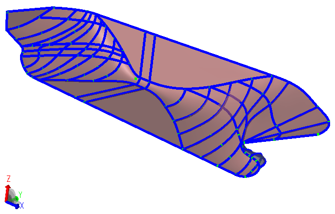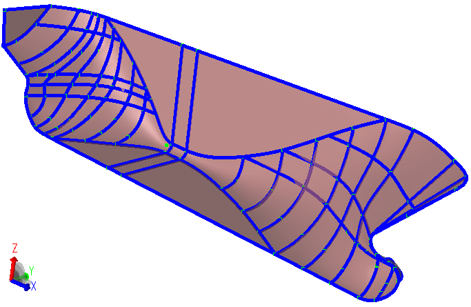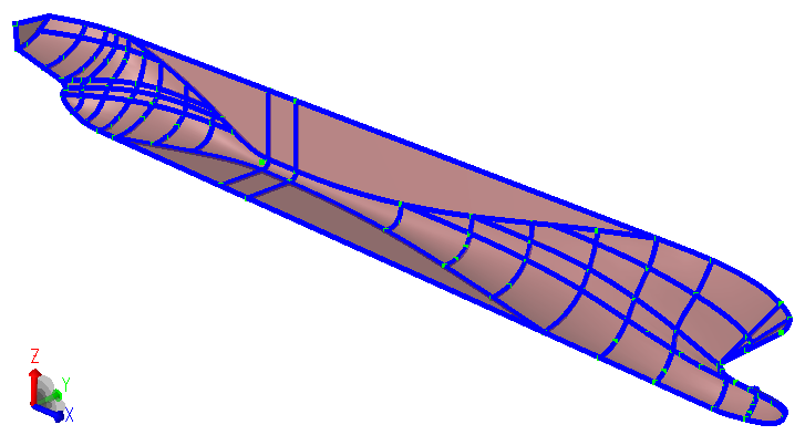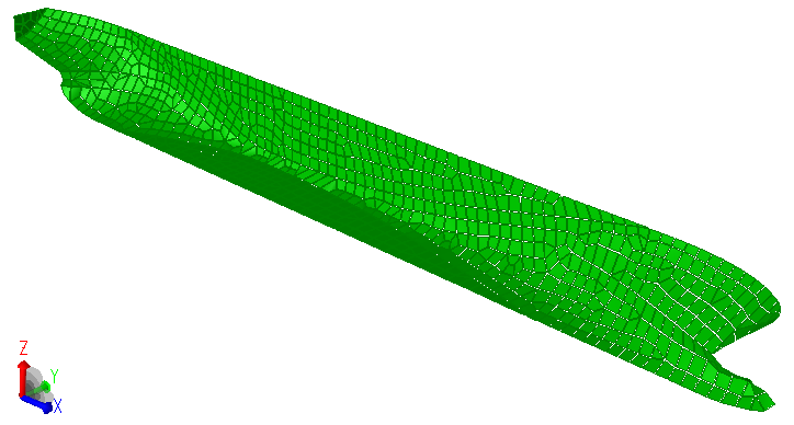 The container vessel can be made by importing the script file Container_Ship_in.js into a new workspace. The mesh size is set to 4.0 m and first order finite elements are used. The finite element mesh is generated by use of the Advancing front quad mesher.