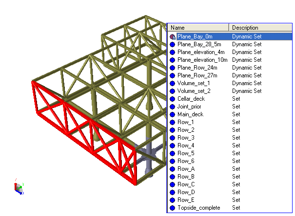 When new objects are inserted the dynamic sets are automatically adjusted so that it is easy to investigate the sets during further modelling, picture or report generation, or results assessments.